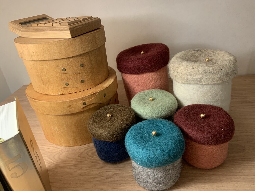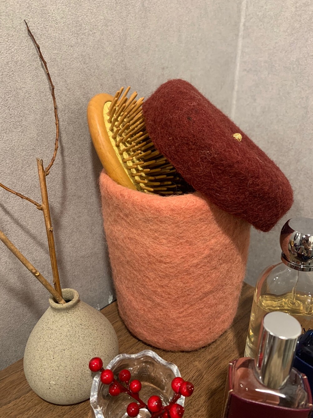 핸드메이드 양모 소재 다용도 보관함 (라지 - 레드)